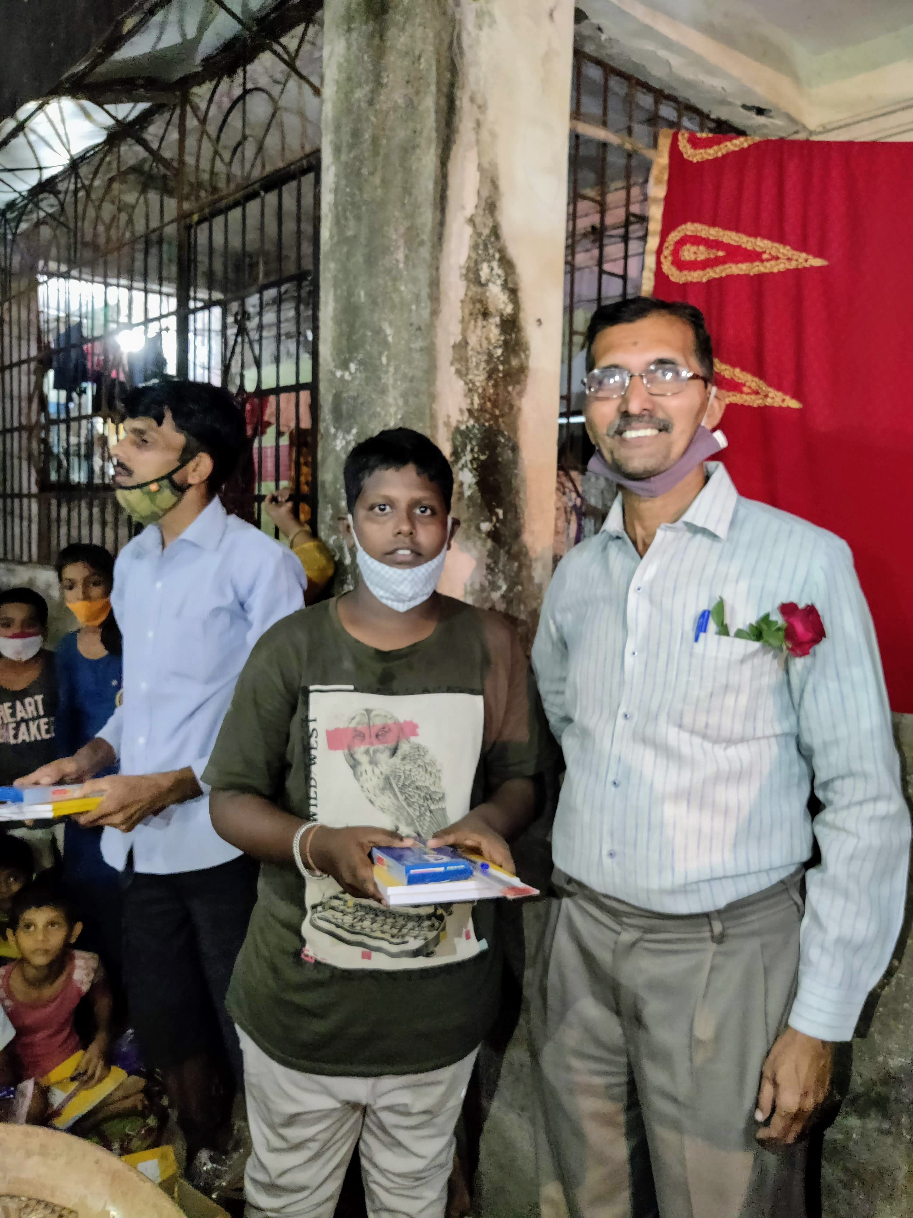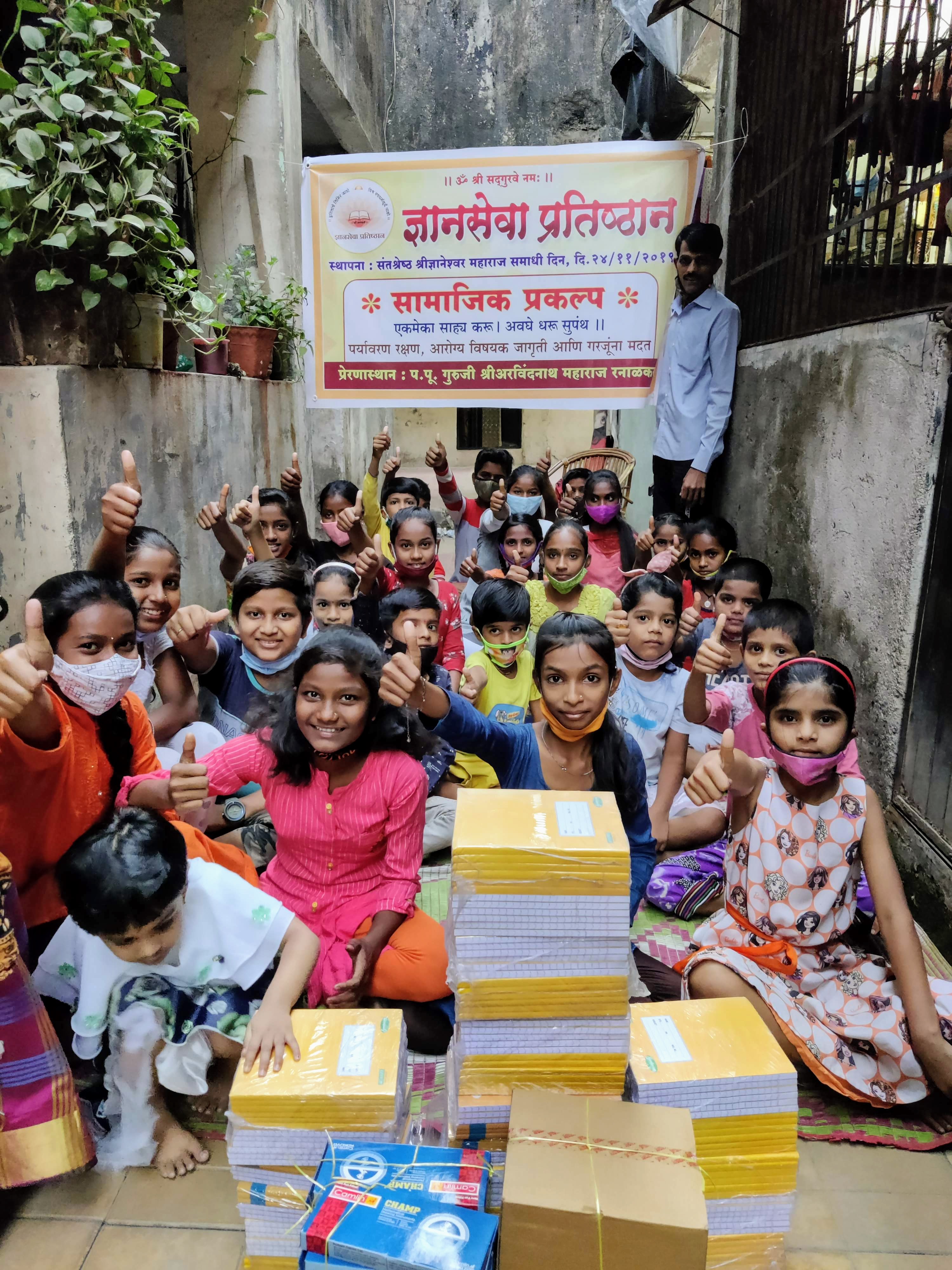 ४)- शैक्षणिक सुविधांपासून वंचित राहिलेल्या विद्यार्थ्यांसाठी शालेय साहित्याचे वाटप.